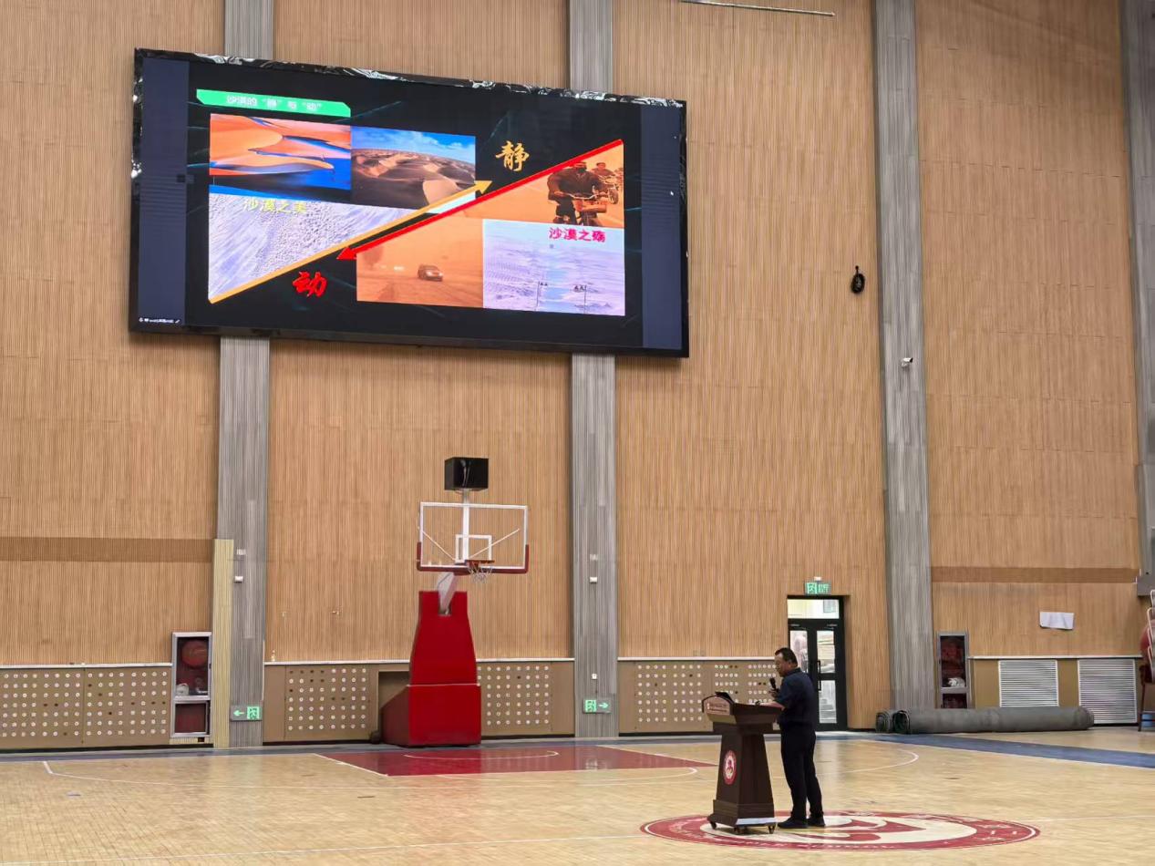 讲座伊始,王永东博士以沙漠的“静”与“动”为切入点,打破了同学们对沙漠的固有印象。用沙漠“静”的魅力和“动”的危机,让同学们看到完整的沙漠,王博士旁征博引,不仅让广大师生领略了大漠的美和文化底蕴,也看到沙漠之“动”的威力,直观了解荒漠化扩张对全球生态环境的威胁,让同学们深刻认识到防沙止漠的紧迫性。