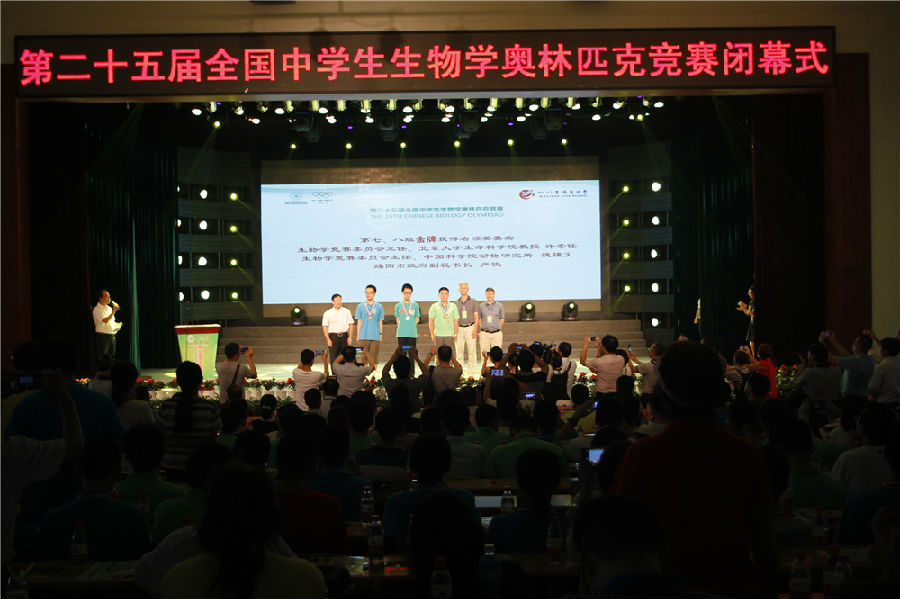25日上午举行第二十五届全国中学生生物学竞赛闭幕式,全国竞赛委员会主任魏辅文作总结发言,本届大赛在赛事组织、后勤保障、考察学习、志愿者安排等方面都做到了井井有条、高效有序。他代表竞赛委员会对绵阳中学表示衷心的感谢。随后全国中学生生物学竞赛委员会副主任范六民、顾红雅依次宣读获奖名单,本届大赛有73名同学获得金牌,71名同学获得银牌,93名同学获得铜牌,获奖选手依次登台授奖。2017年第二十六届全国中学生生物学竞赛将在河南郑州外国语学校举办,闭幕式最后一项内容为本届承办校与下一届承办校领导交接竞赛会旗。
