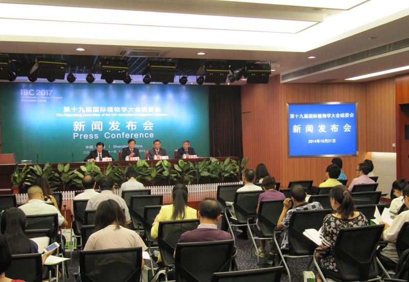 第19届国际植物学大会组委会成立会议结束后,中国植物学会和深圳市人民政府联合举行了新闻发布会。新闻发布会由深圳市城市管理局局长王国宾主持,被推举为第19届国际植物学大会组委会秘书长的葛颂和朱廷峰分别介绍了大会总体方案和筹备工作情况,并就媒体关注和提出的咨询做了回应。
