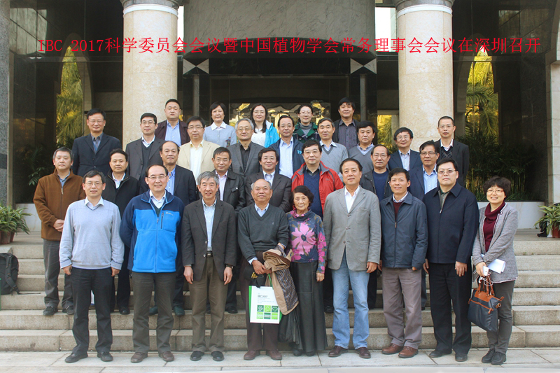 IBC 2017科学委员会会议暨中国植物学会常务理事会会议于2015年1月23日在深圳召开。出席会议的有:理事长武维华;名誉理事长洪德元、匡廷云;常务理事:安黎哲、种康、董鸣、傅承新、葛颂(兼秘书长)、顾红雅、何兴元、何奕騉、胡宝忠、黄宏文、李德铢、李绍华、刘宝、马红、秦路平、饶广远、王仁卿、王英典、薛勇彪、张立新、张铁军、朱友林。