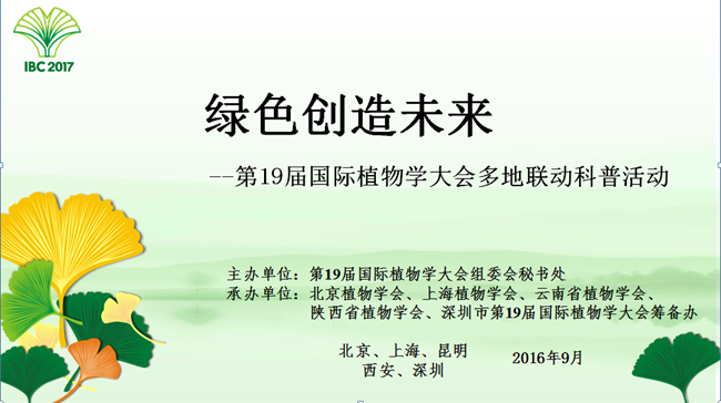 科普活动主题“绿色创造未来”,也是第19届国际植物学大会的主题,通过形式多样的科普活动,也让公众更多地认识第十九届国际植物学大会。第十九届国际植物学大会将于2017年在深圳召开,是国际植物学界最高水平的学术会议,每6年举办一次,拥有百余年创办历史,是全球植物科学家讨论植物科学热点问题、交流最新研究、提出学术观点的重要集会,也是国际植物学届享有极高声誉的学术盛会。作为第一次在发展中国家举行的国际植物学大会,IBC 2017的举办无论对中国还是国际植物学界都是一次具有重大学术意义和深远影响的国际性学术盛事。