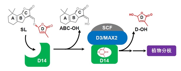植物分枝激素独脚金内酯的感知机制示意图