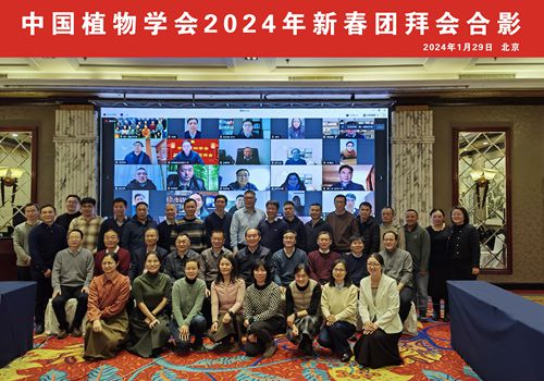 1月29日,中国植物学会2024年新春团拜会在北京举行。中国植物学会理事、监事、专业委员会(分会)负责人、优秀青年会员以及各省级植物学会理事长、秘书长等130余人线上线下欢聚一堂,共话新春。会议由执行秘书长孔宏智研究员主持。