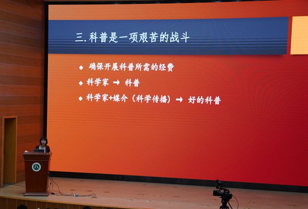科技工作者、媒体人和作家三者间的关系是什么?李瑛以该问题为切入点,全程用问题探究的方式启发思考,引导科普工作者准确定位科普的受众目标,深入评估科普话题的意义与价值等,拓展了科普工作视野。李瑛表示,科普是一项艰苦的战斗,不仅需要科学家们的用心投入,还要精心策划,以公众乐于倾听、易于理解的方式进行科学传播。