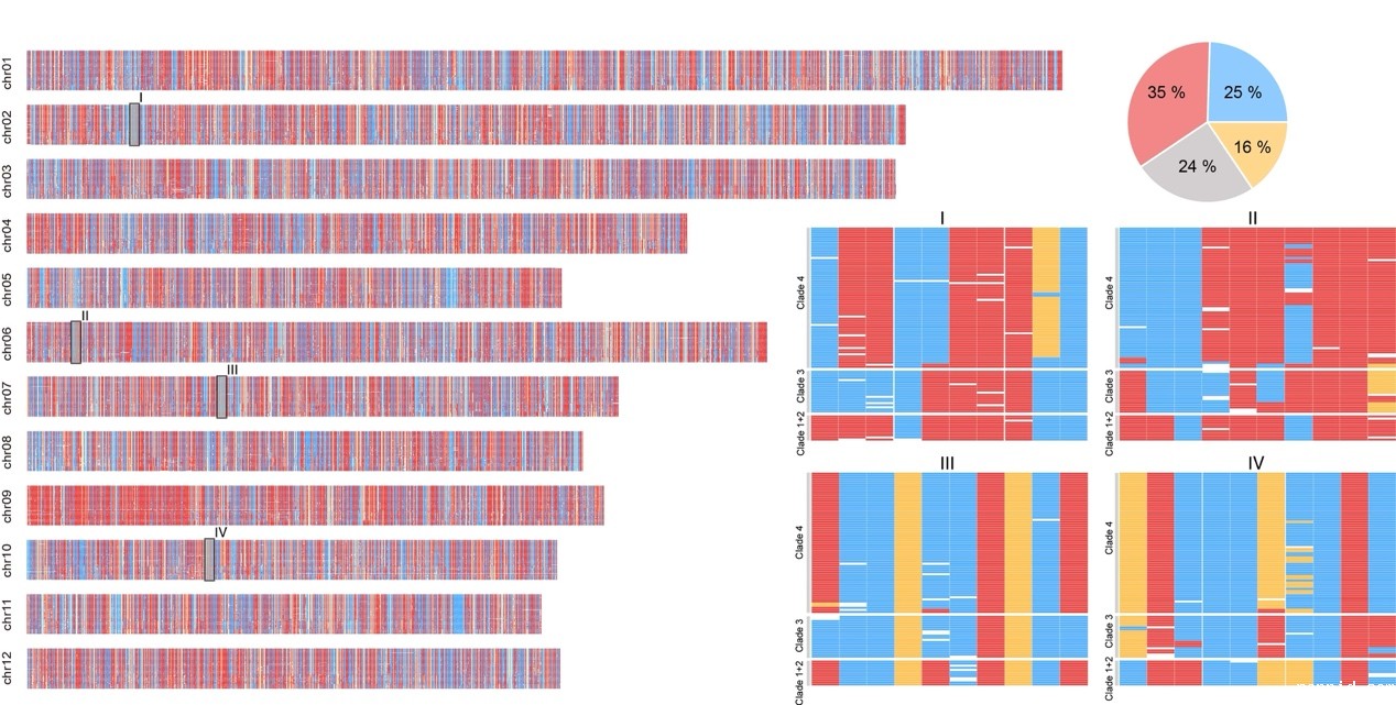 图4|马铃薯基因组上亲本镶嵌的“马赛克”式遗传组合