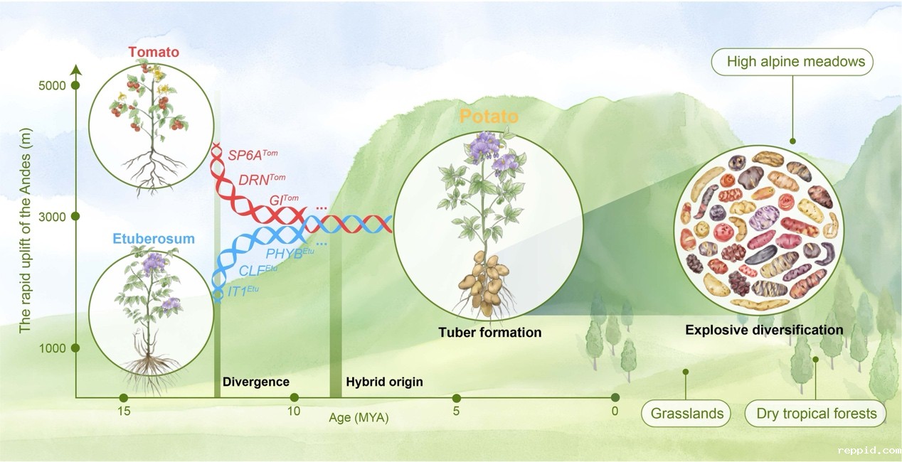 没有人能想到,约900万年前,一场远古的“基因联姻”会缔造出如今的全球第三大主粮作物——马铃薯,更让人意想不到的是,这场“联姻”不仅创造了马铃薯这个新物种,更催生了新器官——薯块的产生,并由此引发了马铃薯物种爆发式的辐射分化。