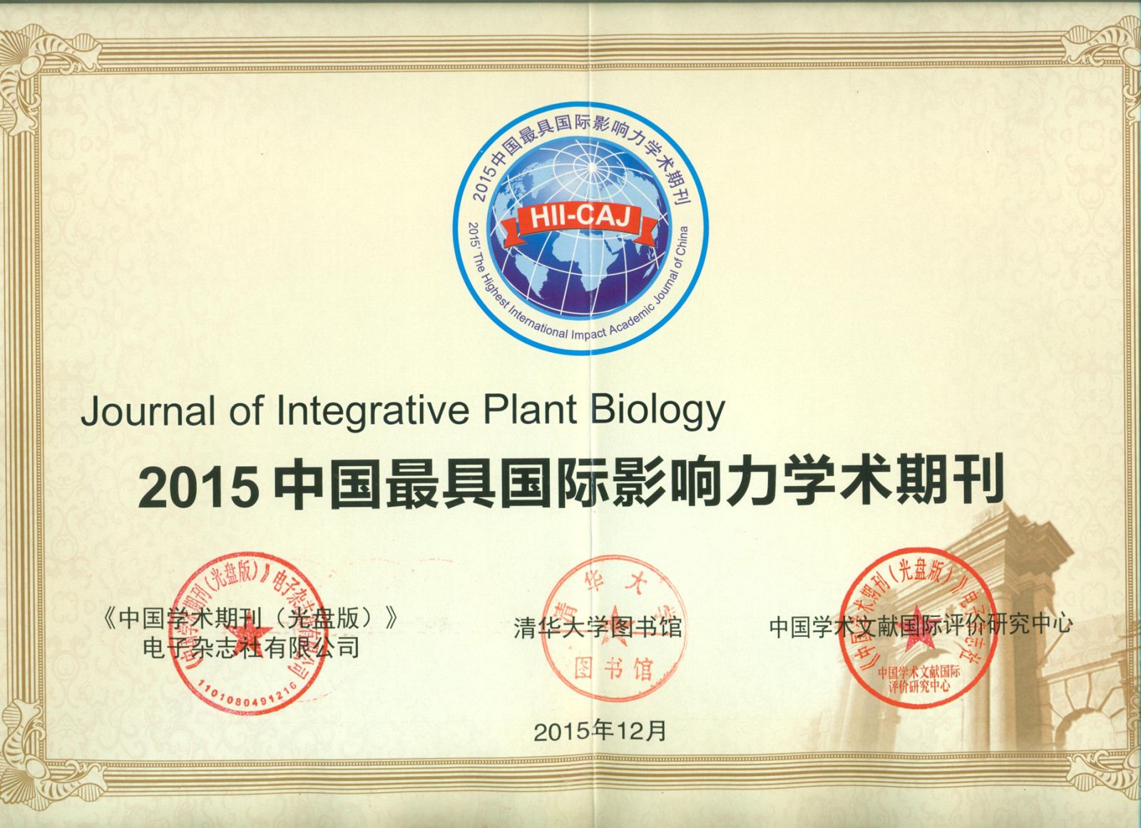 JIPB入选“2015中国最具国际影响力学术期刊”