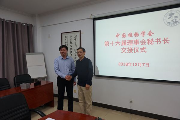2018年12月7日下午,中国植物学会秘书长交接仪式在中科院植物所举行,中国植物学会理事长种康院士、副理事长兼秘书长汪小全研究员、副秘书长孔宏智研究员、副秘书长杨淑华教授、原秘书长葛颂研究员、学会原办公室主任蔡瑞娜女士,现办公室主任杨春晖,以及学会其他相关人员出席。会议由种康主持。