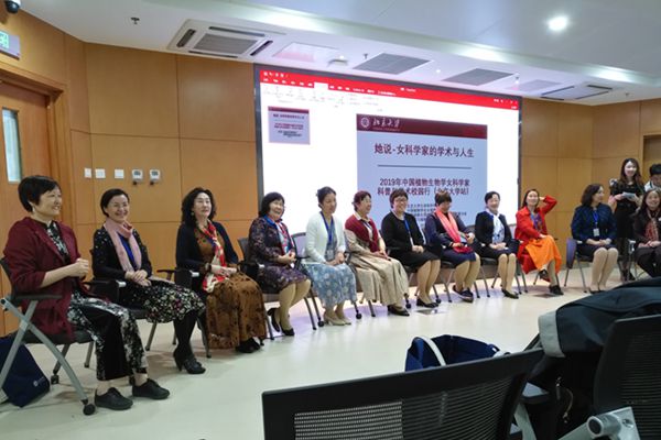 中国植物学会女植物科学家分会和中国植物生理与植物分子生物学学会女科学家分会的13位成员——北京大学的顾红雅教授、中国农业大学的杨淑华教授、中国科学院遗传与发育研究所的曹晓风院士、山东大学的夏光敏教授、中科院植物研究所的田世平研究员、北京师范大学的任海云教授、东北林业大学的李玉花教授、南开大学的王宁宁教师、中国农业大学的傅缨教授、内蒙古农业大学的张少英教授、武汉大学的赵洁教授、北京林业大学的戴思兰教授以及中科院植物研究所的麻密研究员应邀参加活动,与同学们分享女性在科学探索中的心路历程与思考。