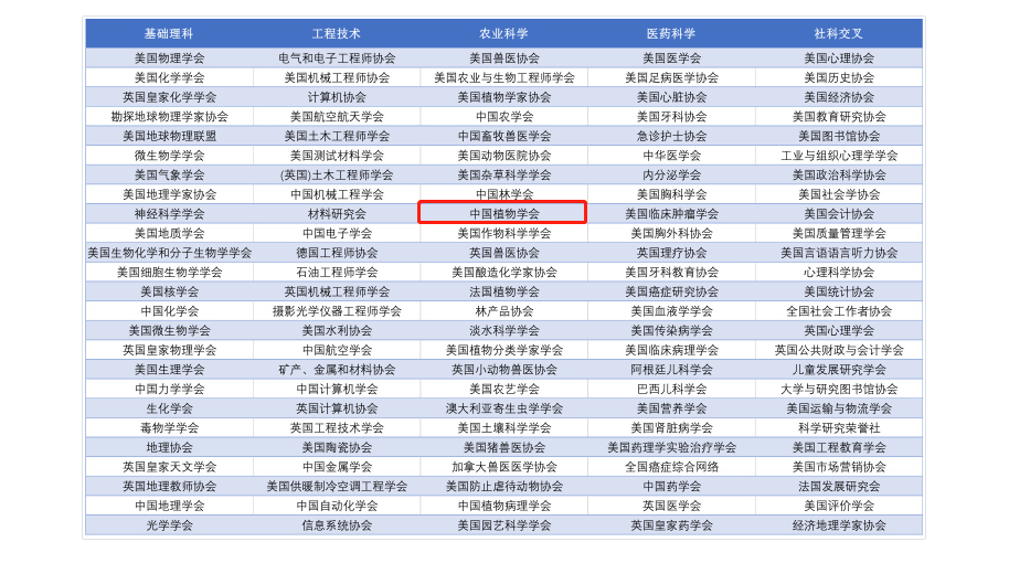 中国植物学会入选2020年世界一流科技社团农业科学领域10强