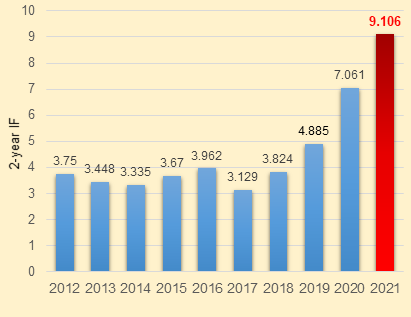 图1. JIPB 2012-2021影响因子
