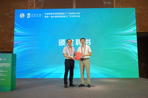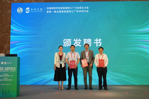 中国植物学会理事长种康为智能植物工厂分会会长林荣呈颁发聘书